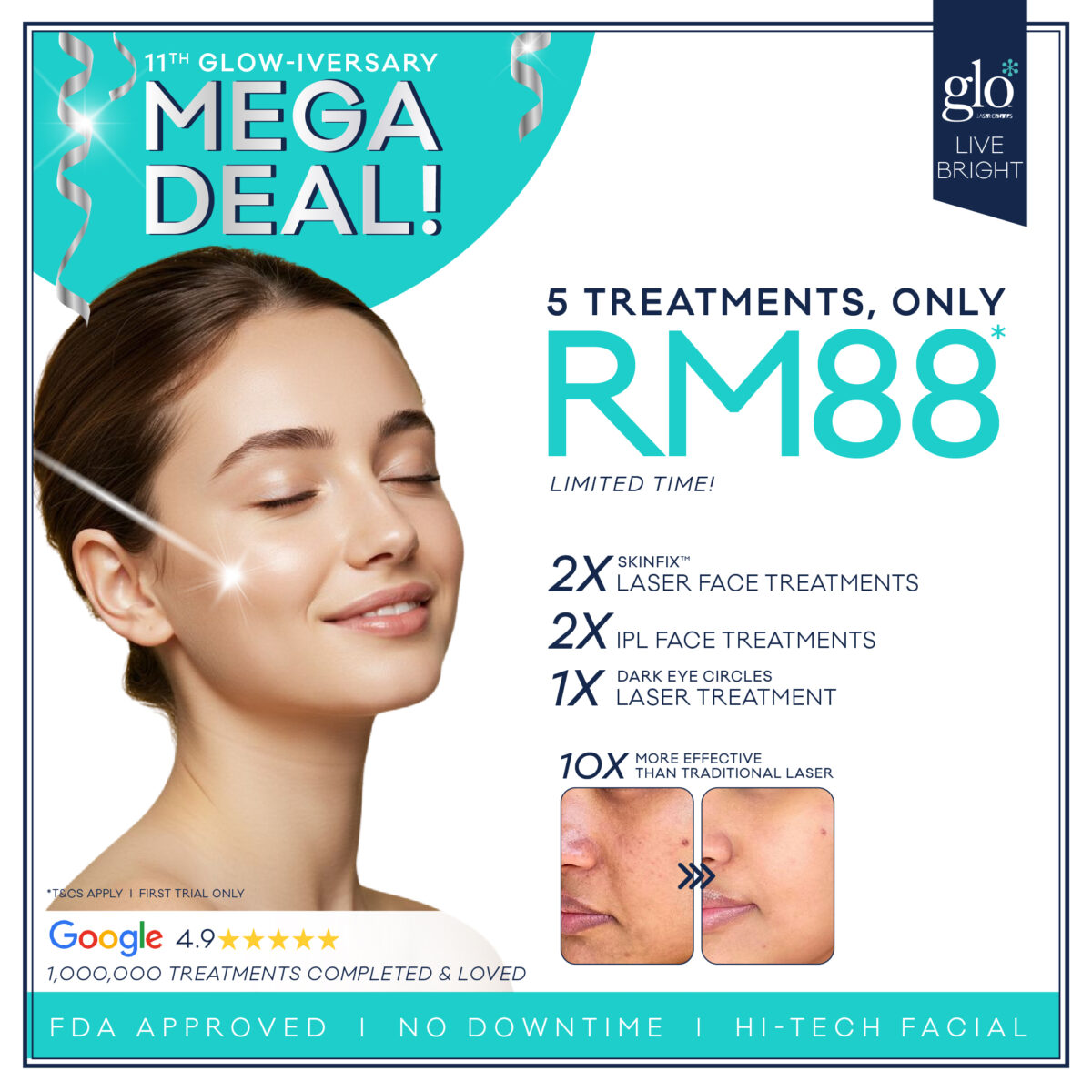 Enjoy RM88* for 2x SKINFIX Laser & IPL Face Treatment First Trial + 1x Dark Eye Circles Laser Treatment (worth RM974)