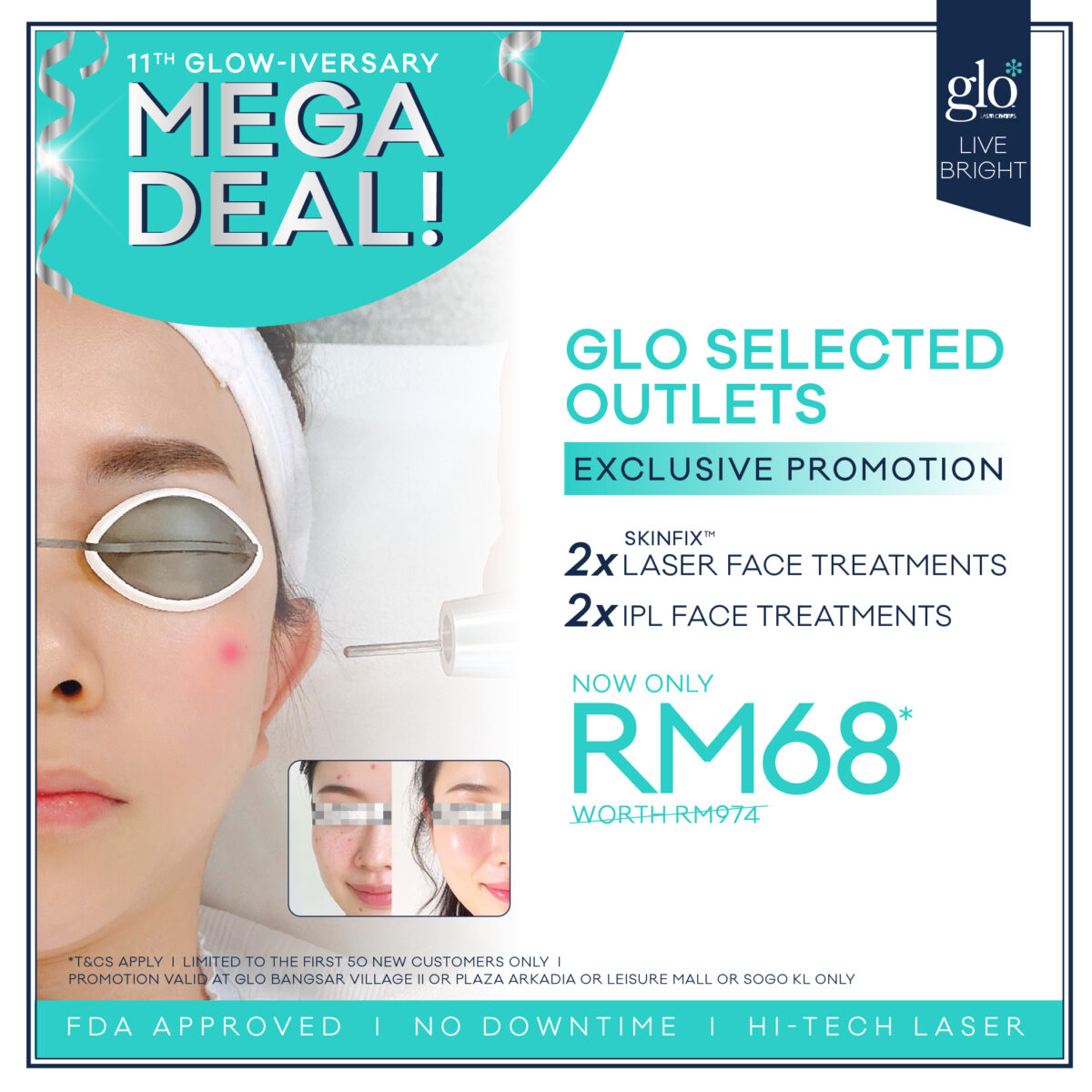 – Redeemable at GLO SOGO KL, Leisure Mall, Plaza Arkadia, Bangsar Village II only